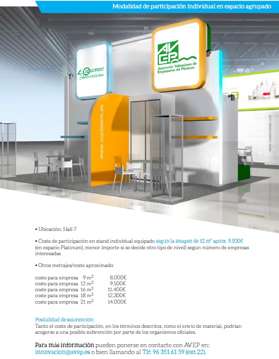 - Coste de participación en stand individual de 12 m2 con diseño proporcionado por la feria pero personalizable según tarifa 2016: 4.500€.