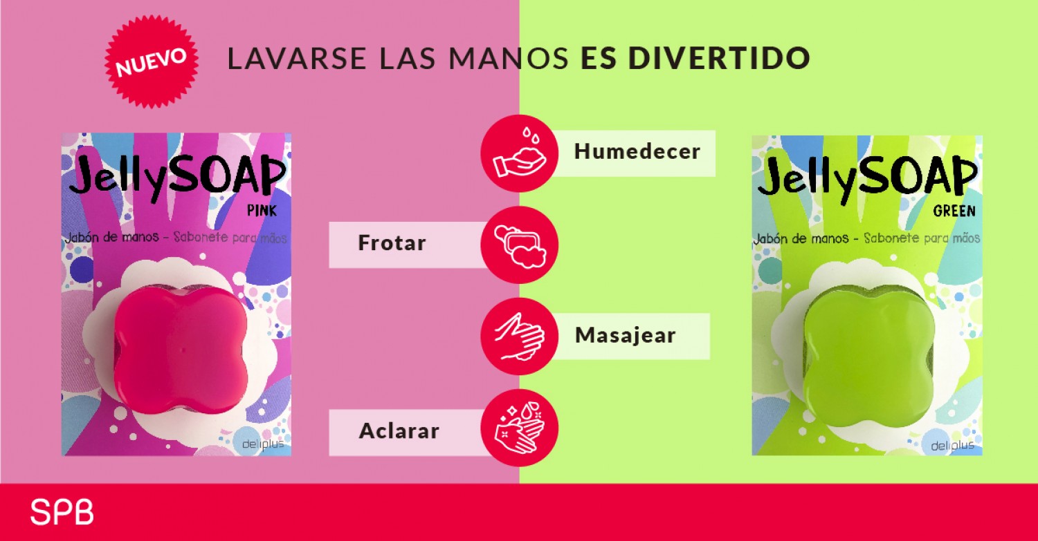 Fruto de la inversión en innovación SPB presenta su nueva línea de producto JellySOAP Deliplus. Se trata de un jabón de manos pero muy especial. Tiene una forma diferente y, sobre todo, su textura ofrece una experiencia nueva y divertida. Parece una gelatina, blandita y agradable con la que lavarse las manos nunca volverá a ser aburrido. Además, puedes encontrar dos colores con sendos perfumes asociados. El JellySOAP Pink tieen un color rosa-fucsia vivo que te encantará y enamorará con su perfume dulce y floral. Para los amantes de las sensaciones frescas, JellySOAP Green se presenta con un color verde lima y olor a cítricos que hará las delicias de toda la familia.
